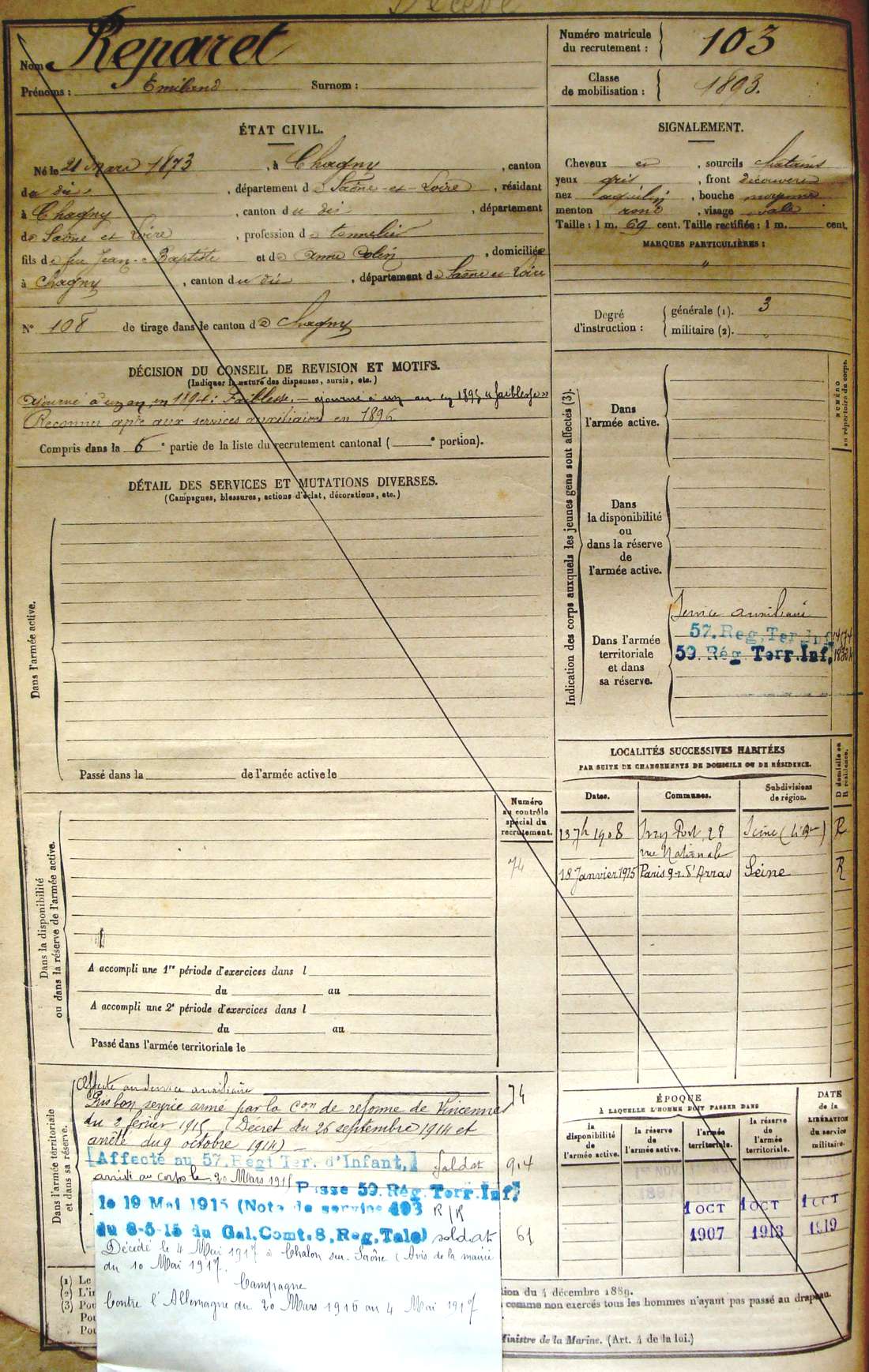 Lieu de décès : Chalon-sur-Saône