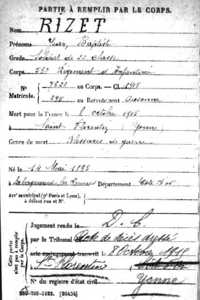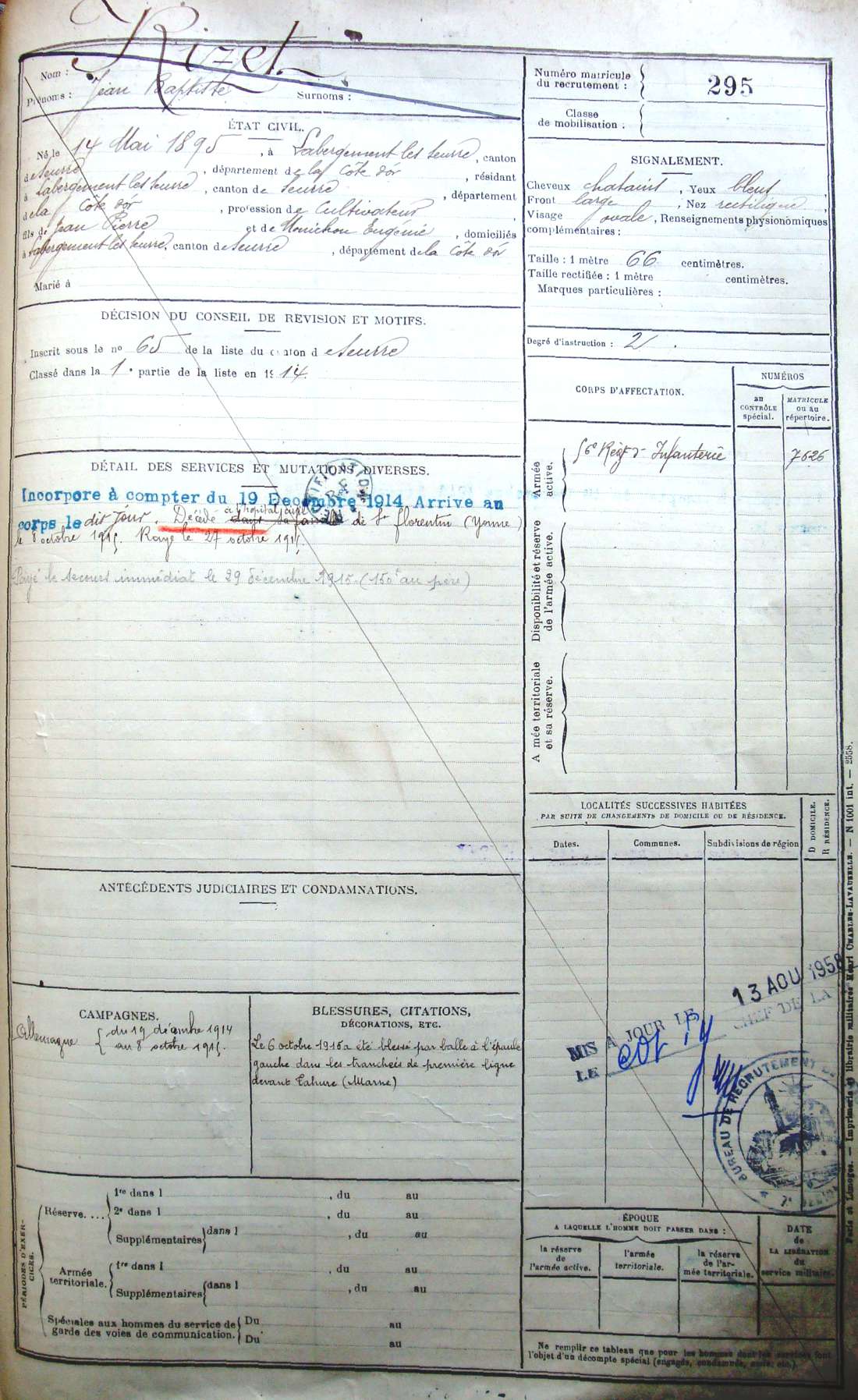 - Sur le Monument aux Morts de Labergement-Lès-Seuure (21) le prénom de ce Brave est mentionné François. Après vérification, on peut dire qu'il y a probablement eu une errur à la gravure