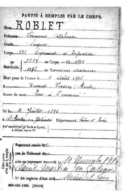 Au 05/09/1919 parents vivants mariés Avis de nomination grade Sergent = Courrier de S&L du 08-02-1916