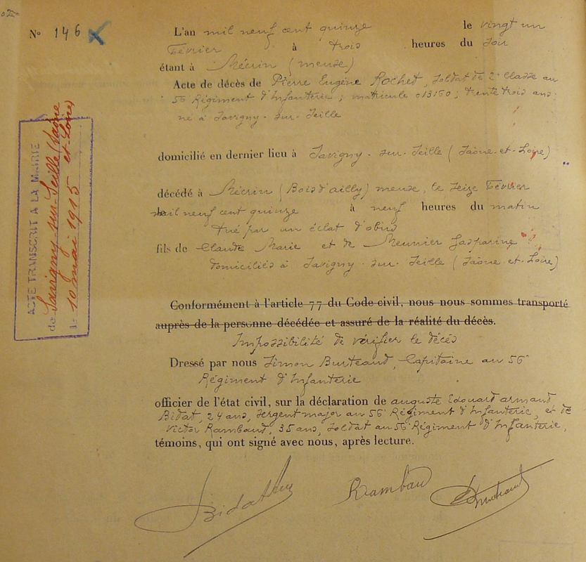 Epouse : Mme Vve ROCHET née GEOFFROY