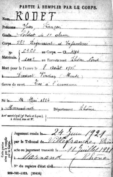 Lieu précis de décès : Devant Verdun