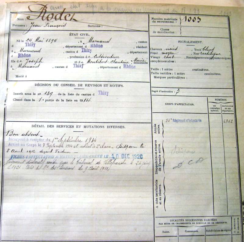 Régiment : 56ème R.I.