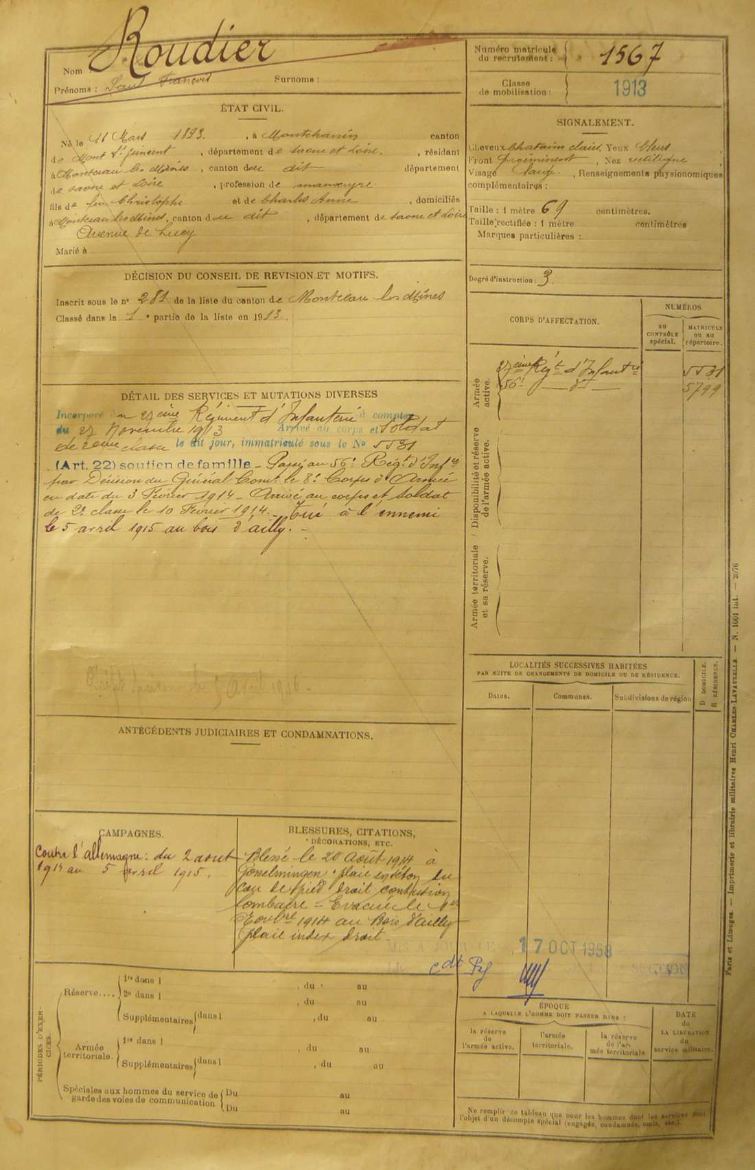 Mère : Mme Vve ROUDIER ANDROT(a)