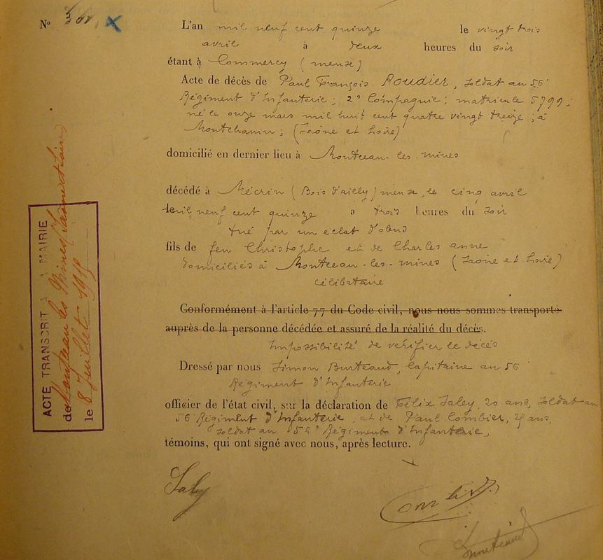 Commune renommée Montchanin le 04/10/1958 - Il est inscrit Remariée et veuve sur RP