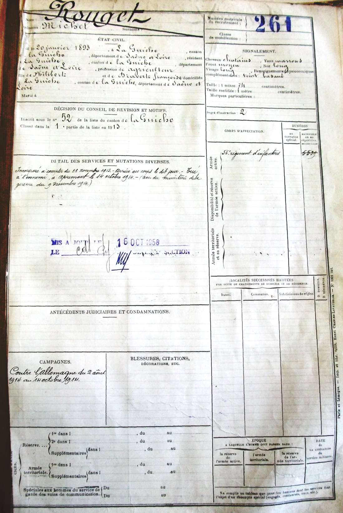 Régiment : 56ème R.I.