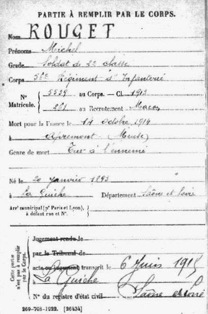 Genre de décès : tué à l`ennemi
