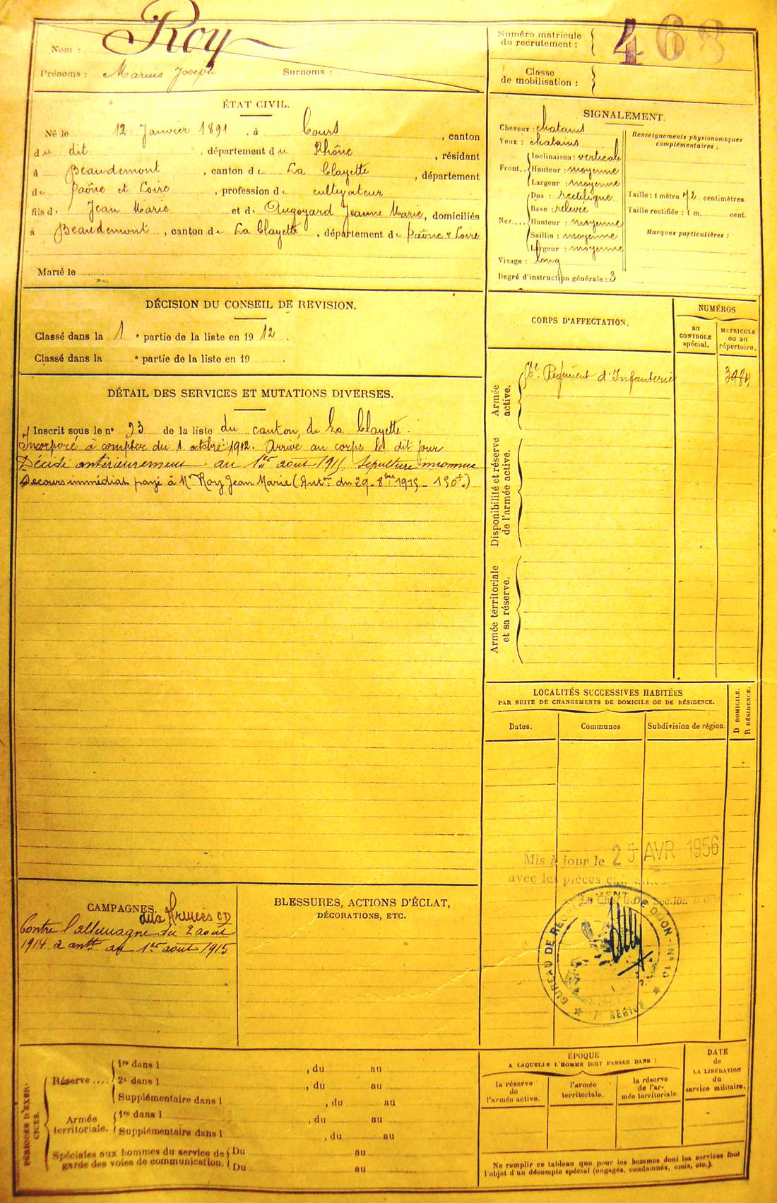 Régiment : 56ème R.I.