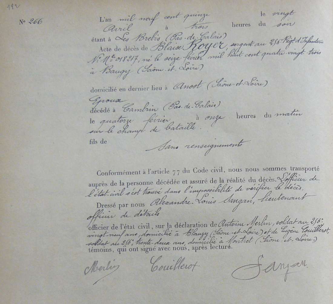 Lieu de décès : Cambrin
