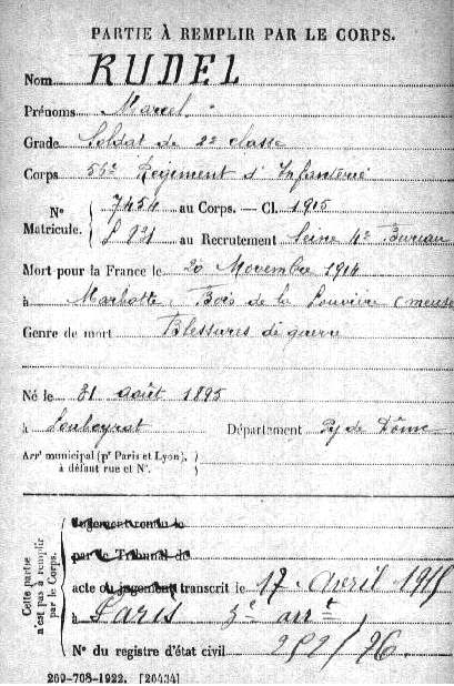 Epouse : Mme Vve RUDEL née FAURE Anne