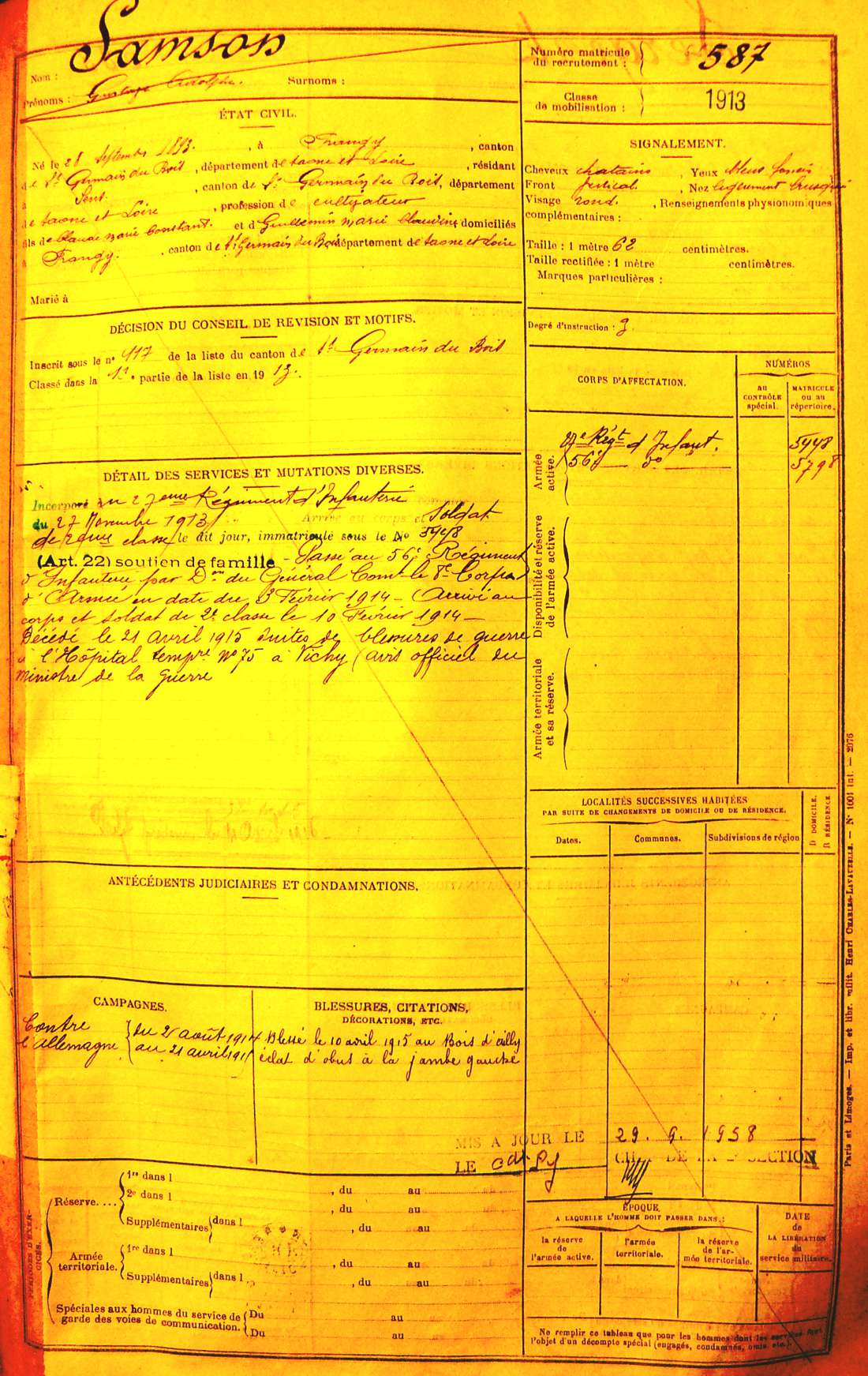 Régiment : 56ème R.I.