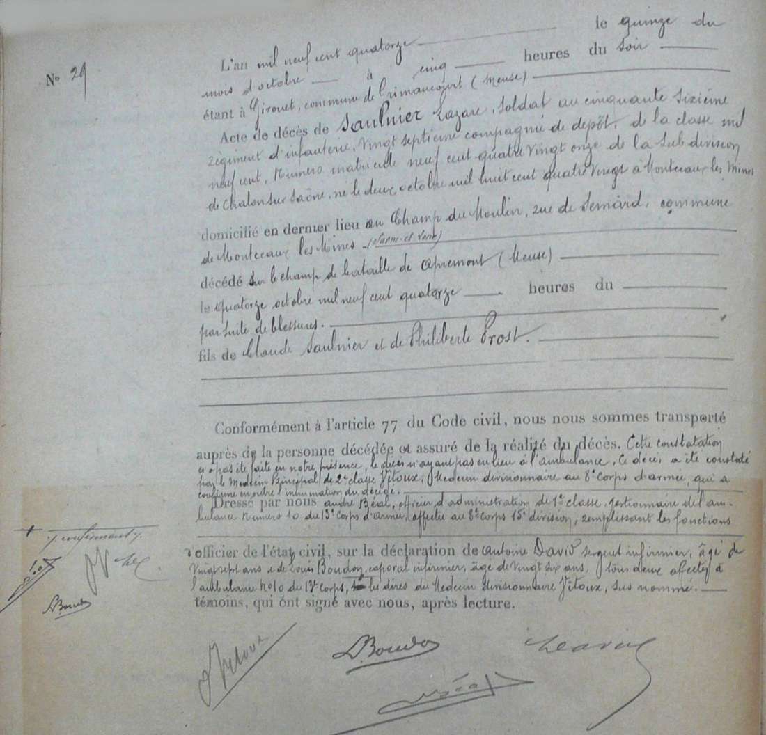 Epouse : Mme Vve SAULNIER BADET