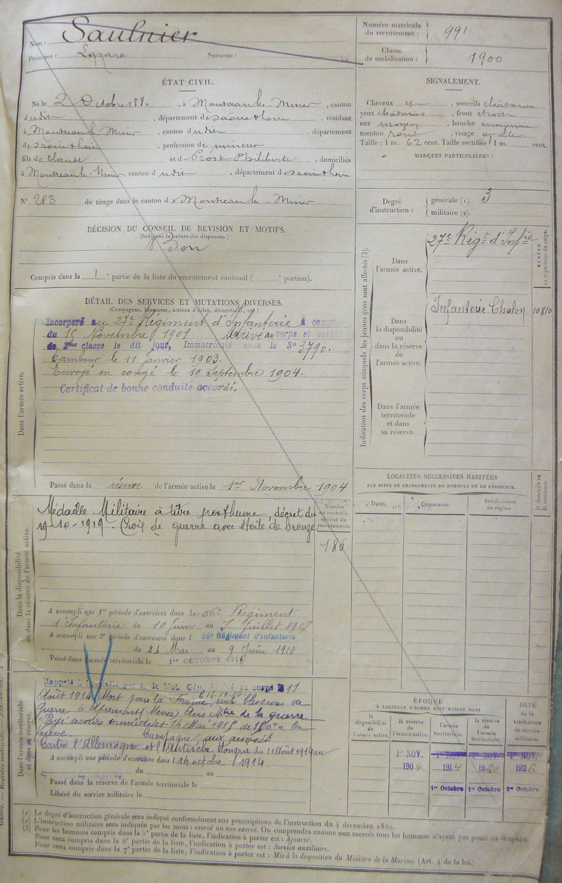 Ville de recrutement : Chalon-sur-Saône