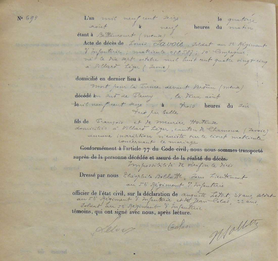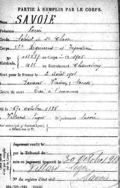 Mère : Vve SAVOIE née MEUNIER Hortense