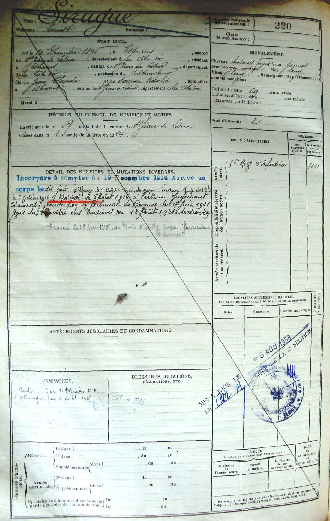 Lieu de décès : Verdun