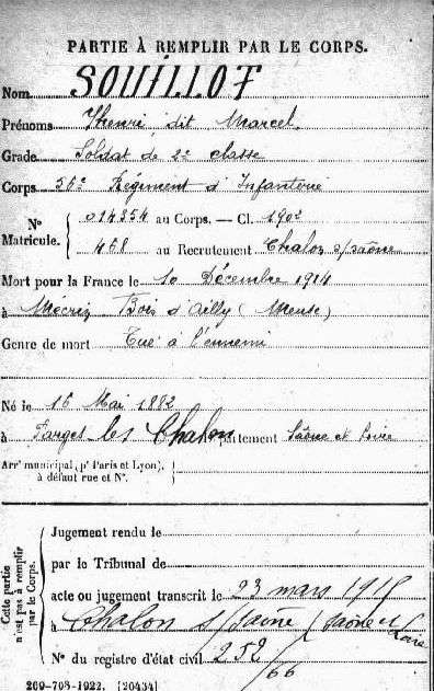 Epouse : Mme SOUILLOT née DUPAQUIER Marie Louise