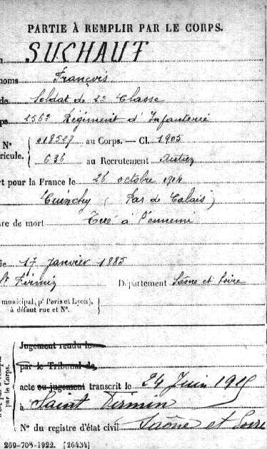 Epouse : Mme Vve SUCHAUT née BADEZ