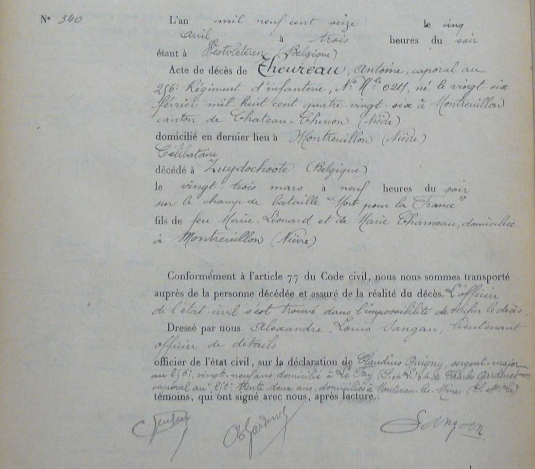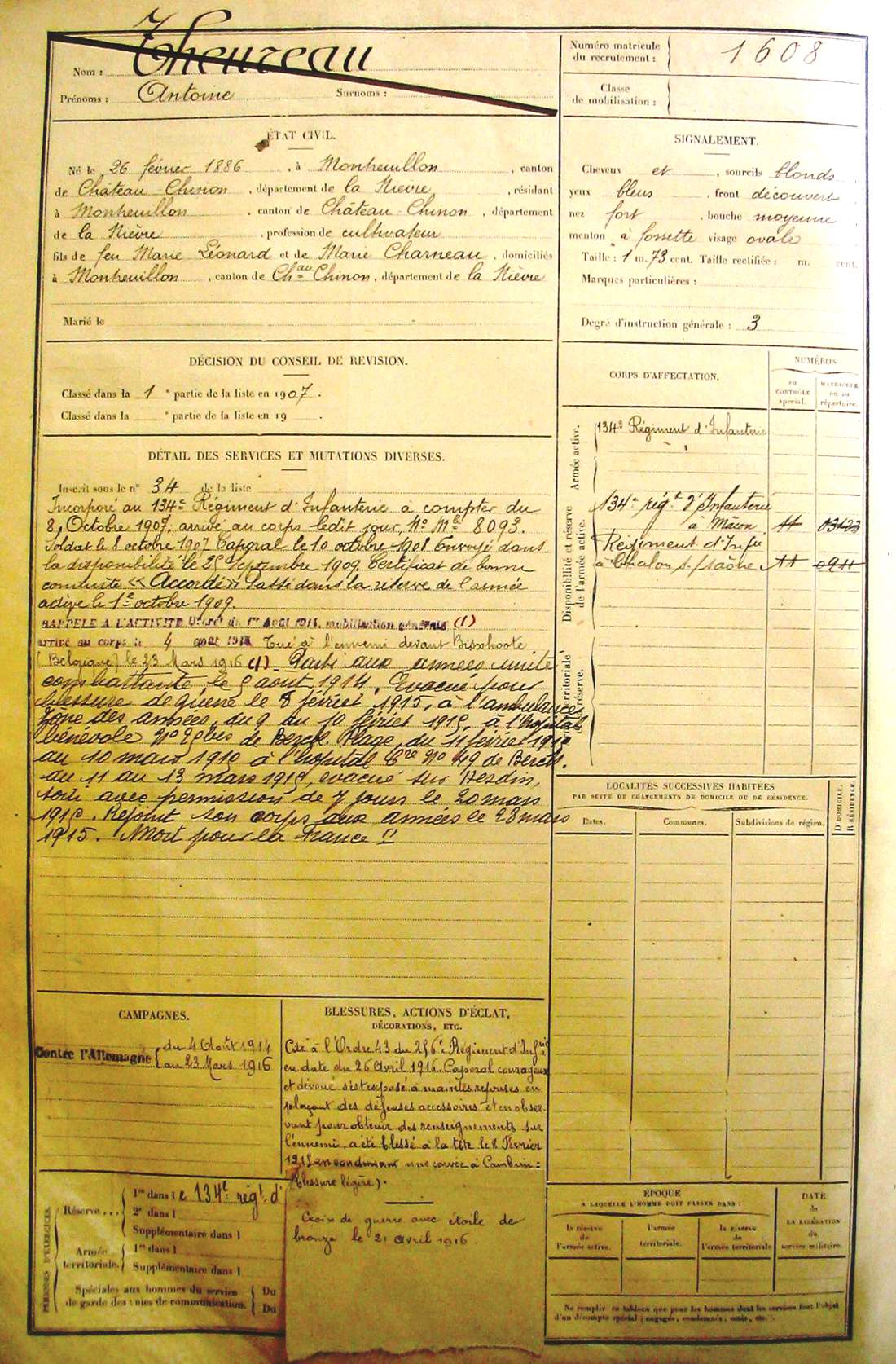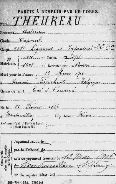 Mère : Mme Vve THEUREAU née CHARNEAU