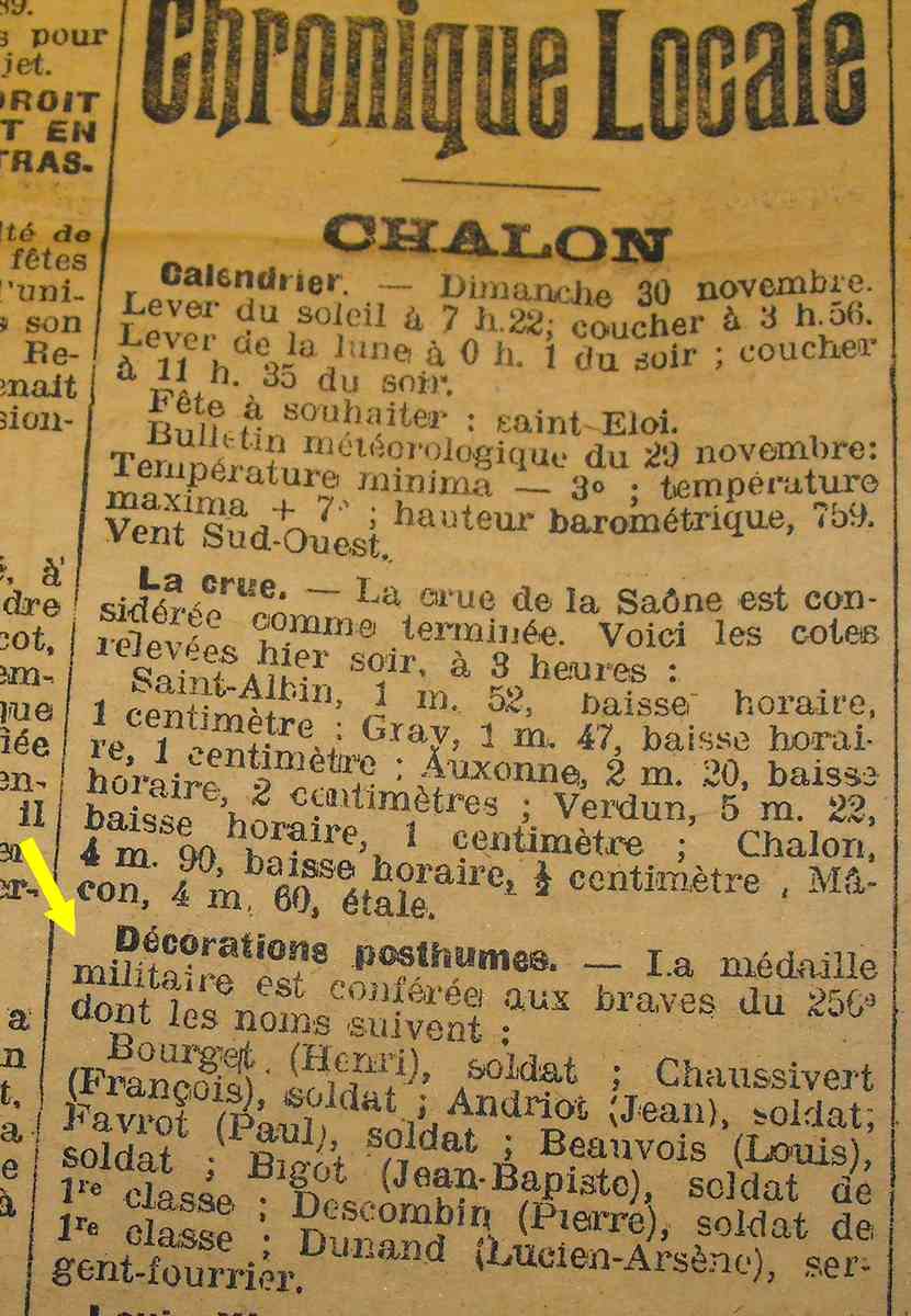Avis DC = Courrier de S&L non daté I Avis de décoration de la Médaille Militaire à titre posthume = Courrier S&l du 30-11-1919