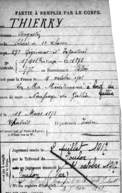 Lieu précis de décès : Naufrage du Gallia