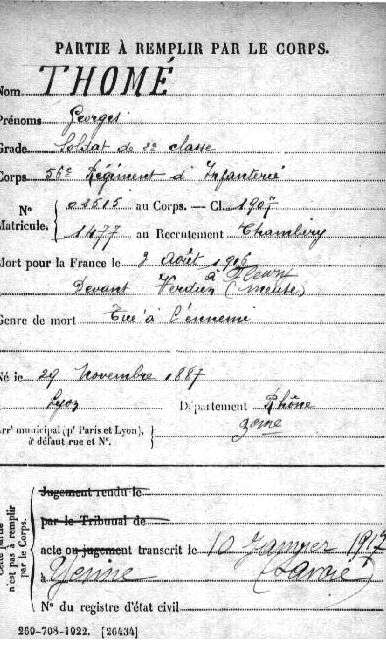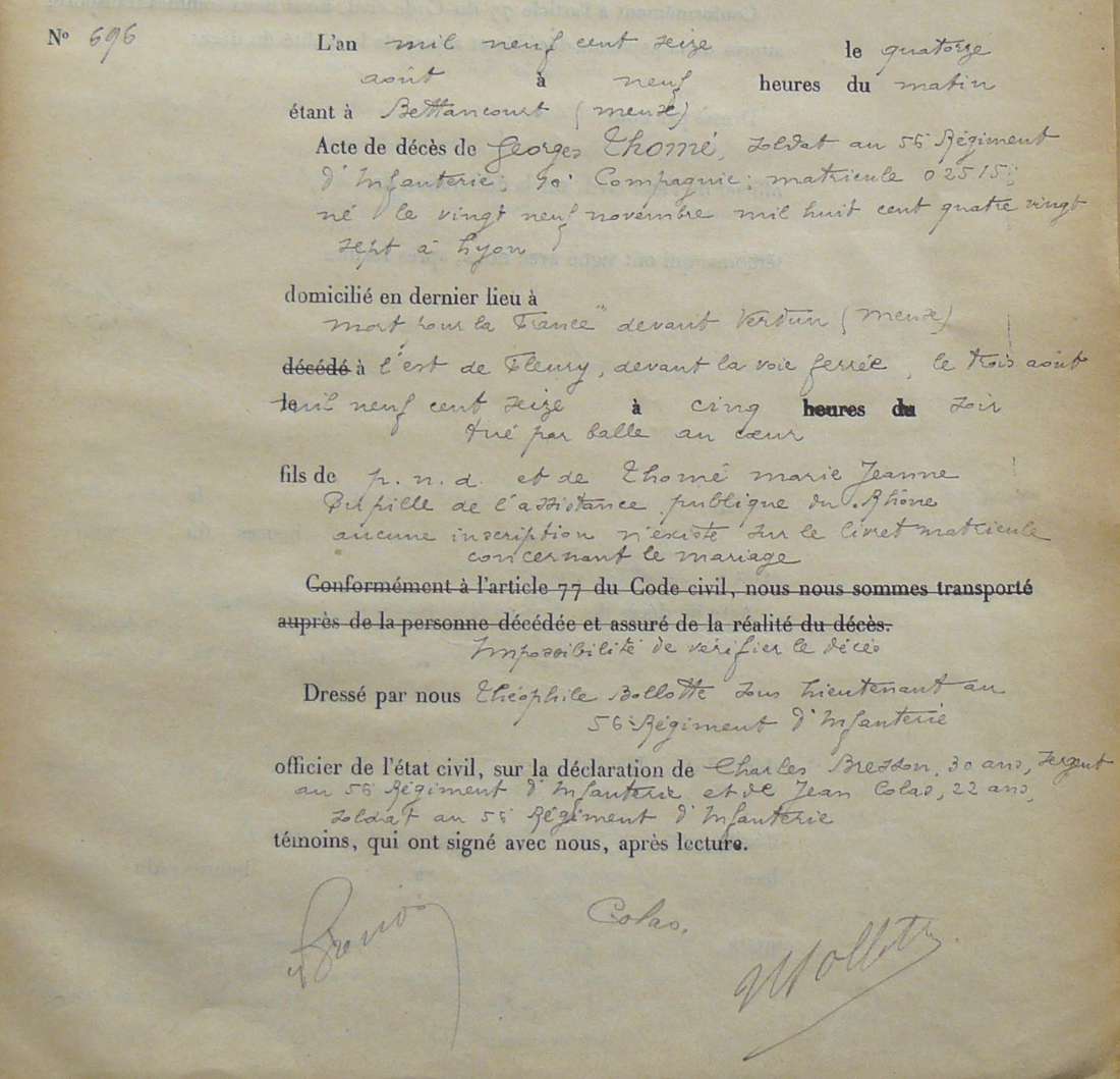 Lieu précis de décès : devant la voie ferrée à l'Est de Fleury