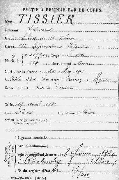 Genre de décès : Tué à l`ennemi