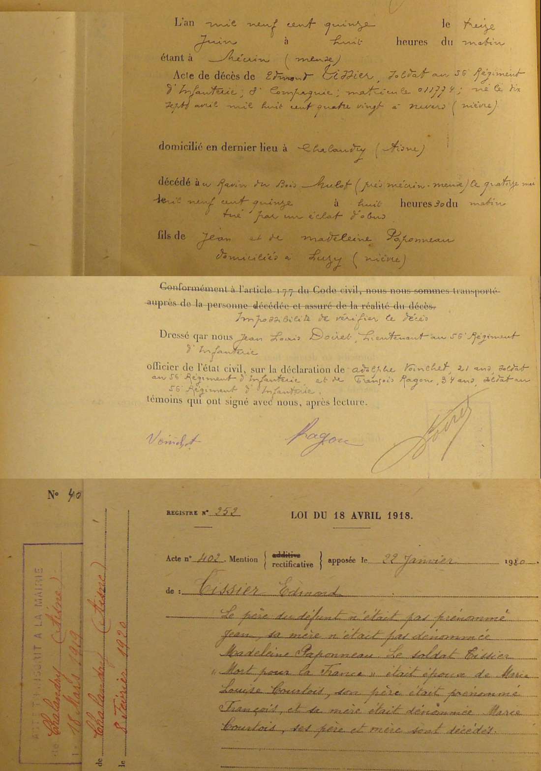 Régiment : 56ème R.I.