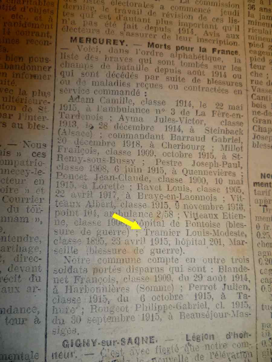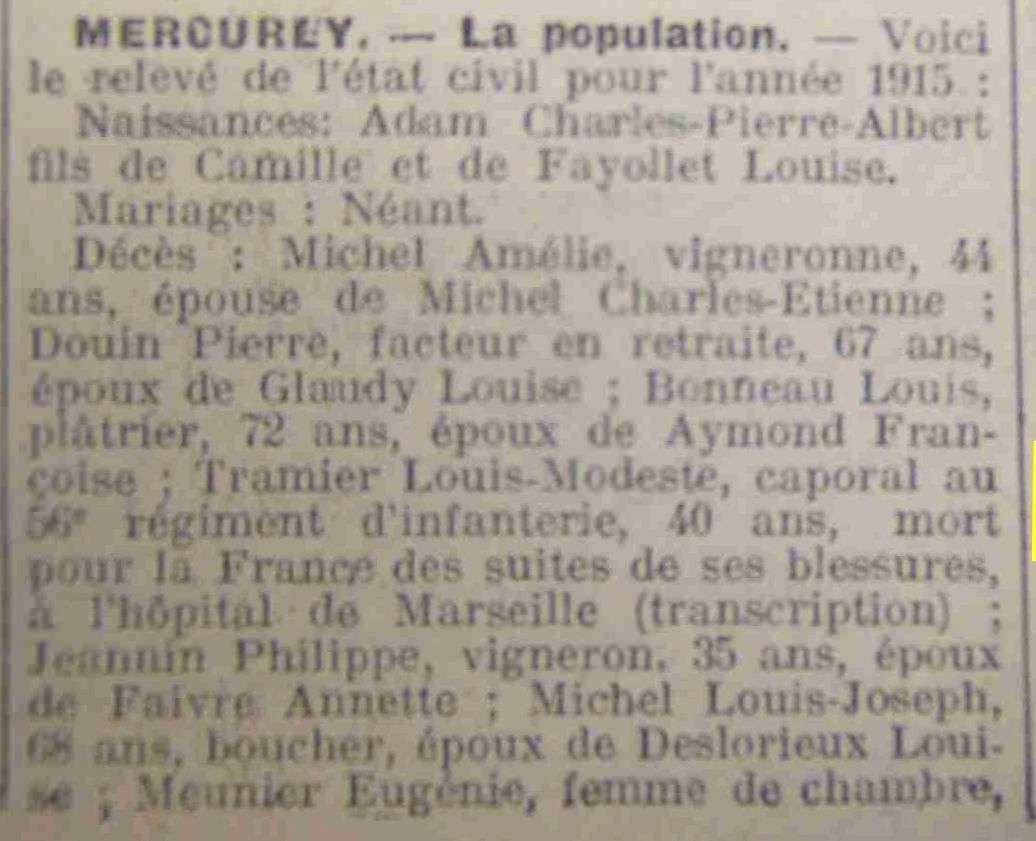 Bourgneuf-Val-d'Or (Commune rattachée à Mercurey le 01/02/1971) - AU 22,09,1919 PARENTS VIVANTS Avis liste récapitulative DC de Mercurey = Courrier de S&L du 28-02-1916 et 13-01-1919 I Avis d'obsèques = Courr S&L 23-04-1915