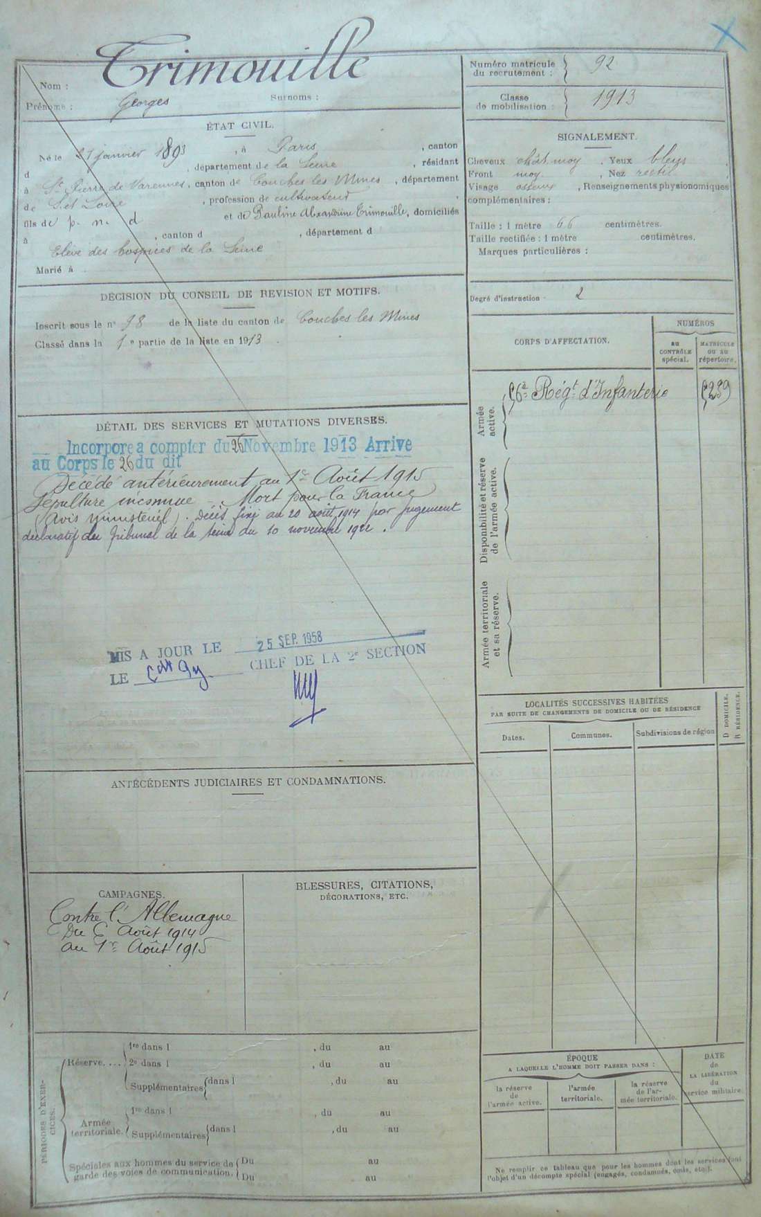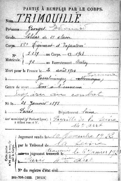 Pupille de la Seine. Inhumé à l`ossuaire de la Nécropole Nationale de Gosselming (57).