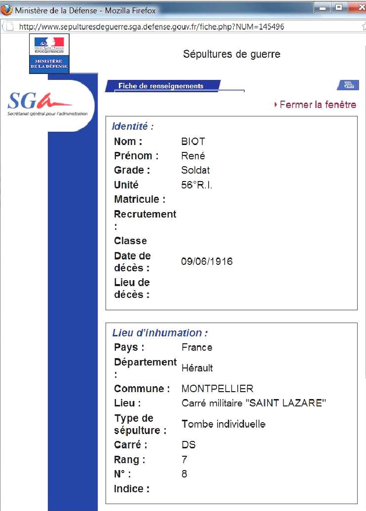 Genre de décès : Maladie contractée en service