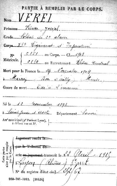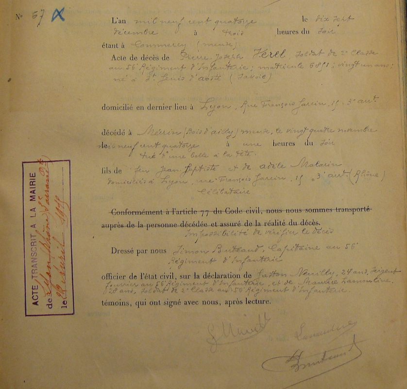Saint-Genix-d'Aoste (Commune renommée Saint-Genix-sur-Guiers en 1908) - Dernier domicile : 25 rue François Garcin à Lyon (69003)