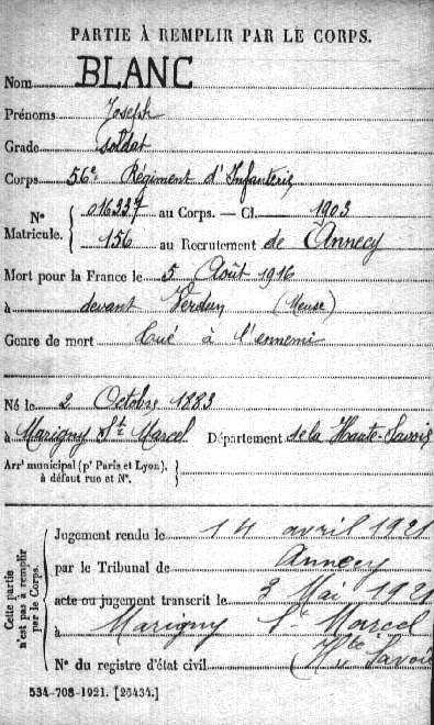 Lieu de décès : Verdun