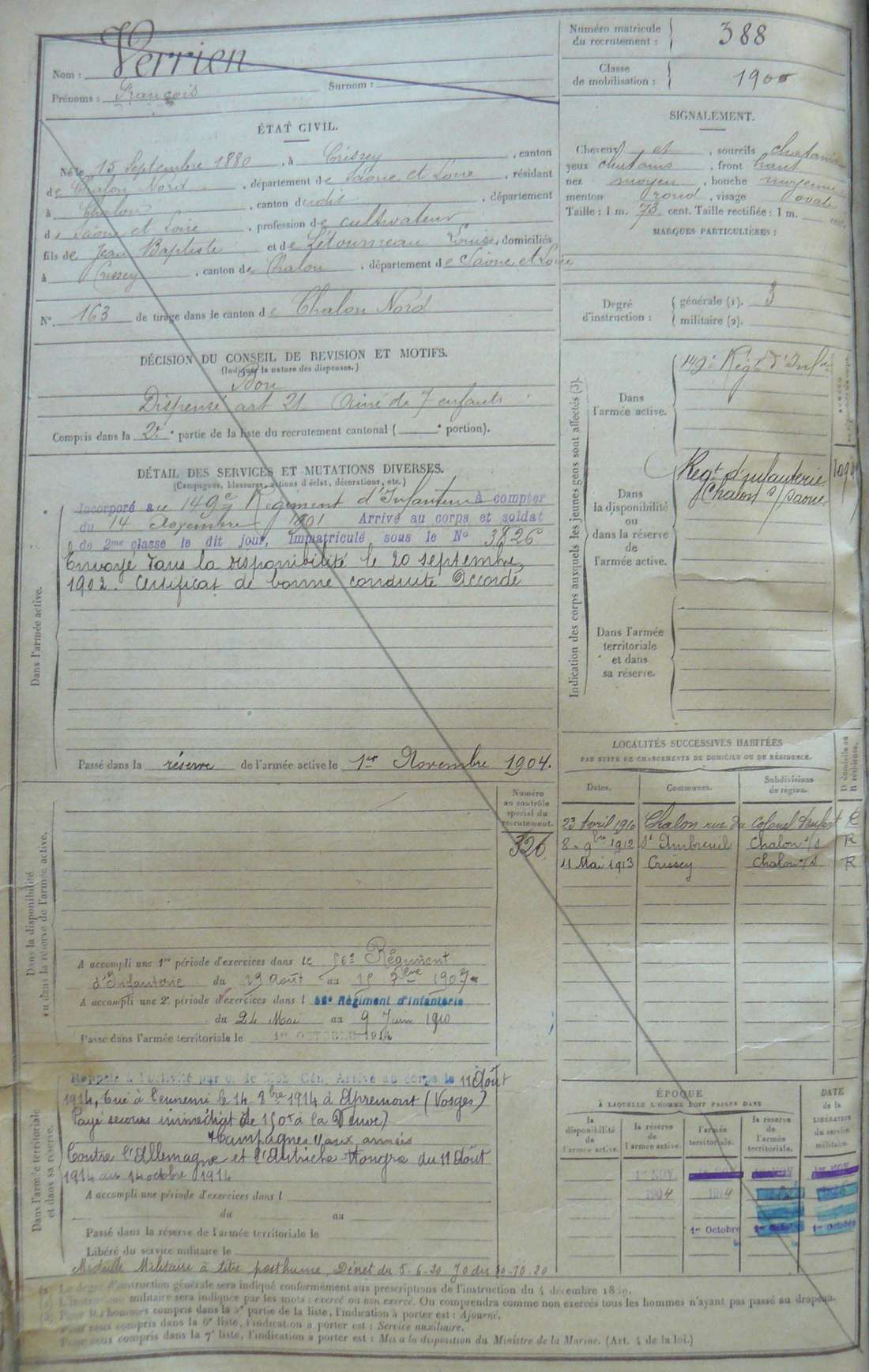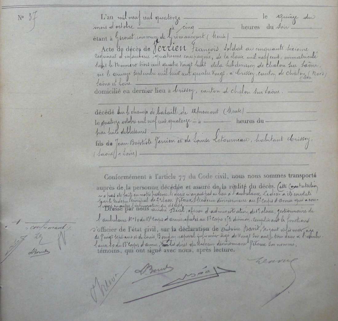 Marié à Farges (71) le 10/01/1914