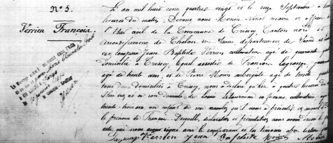 Registre d'état civil : Crissey
