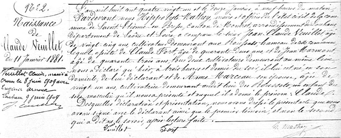 - Suite aux conseils prodigués par une certaine Mme. CLEMENT, la veuve a obtenu un secours, par l'état, de 200 frs. (Source, Mme. M-C PERNOT épouse du petit-fils du Sergent Claude VEUILLET).