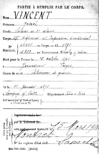 Epouse : VINCENT née CARLOT Jeanne