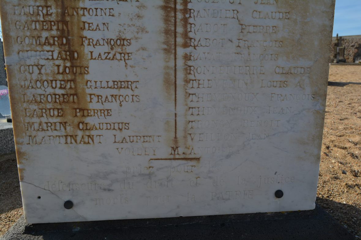 Inscription sur le monument : Saillenard (71) Neuilly (03) Lons (39)