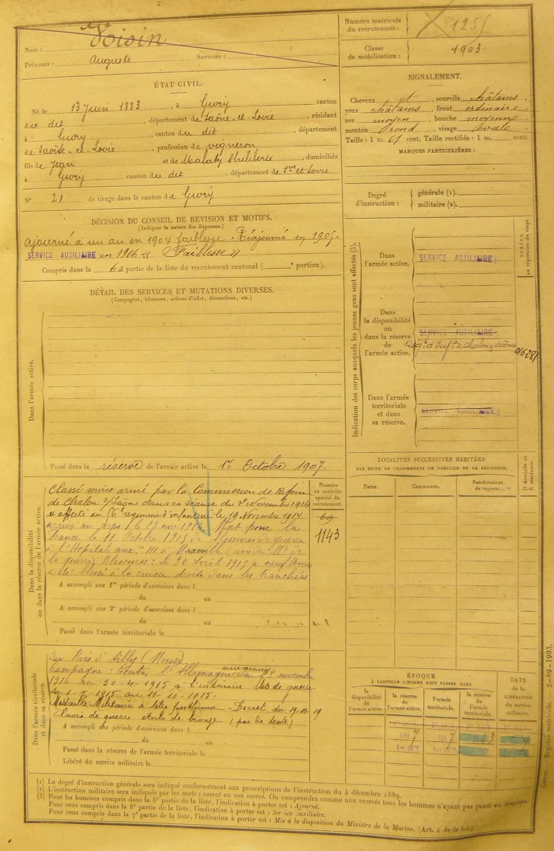 Ville de recrutement : Chalon-sur-Saône