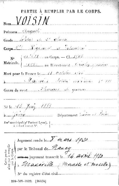 Lieu précis de décès : Hopital auxiliaire 111