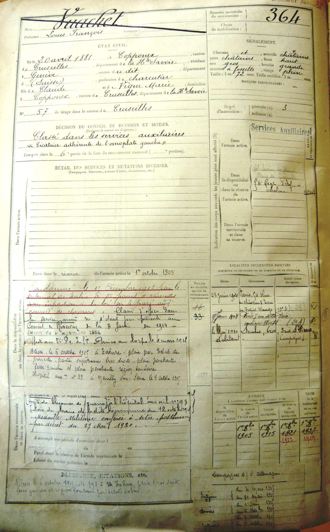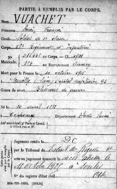 Lieu précis de décès : Hopital auxiliaire n° 93