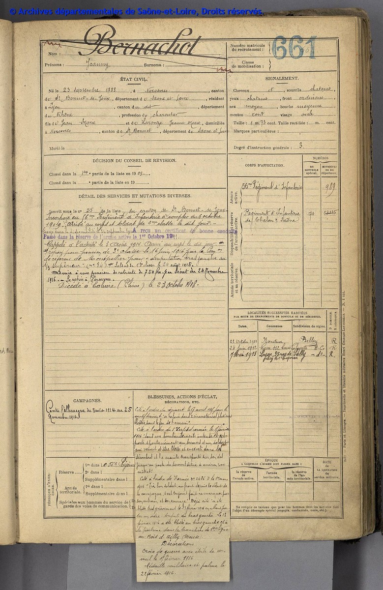 Source : Archives départementales de Saône et Loire-71-Cote 1 R RM Mâcon 1908/2