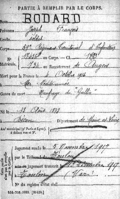 Genre de décès : Naufrage du Gallia