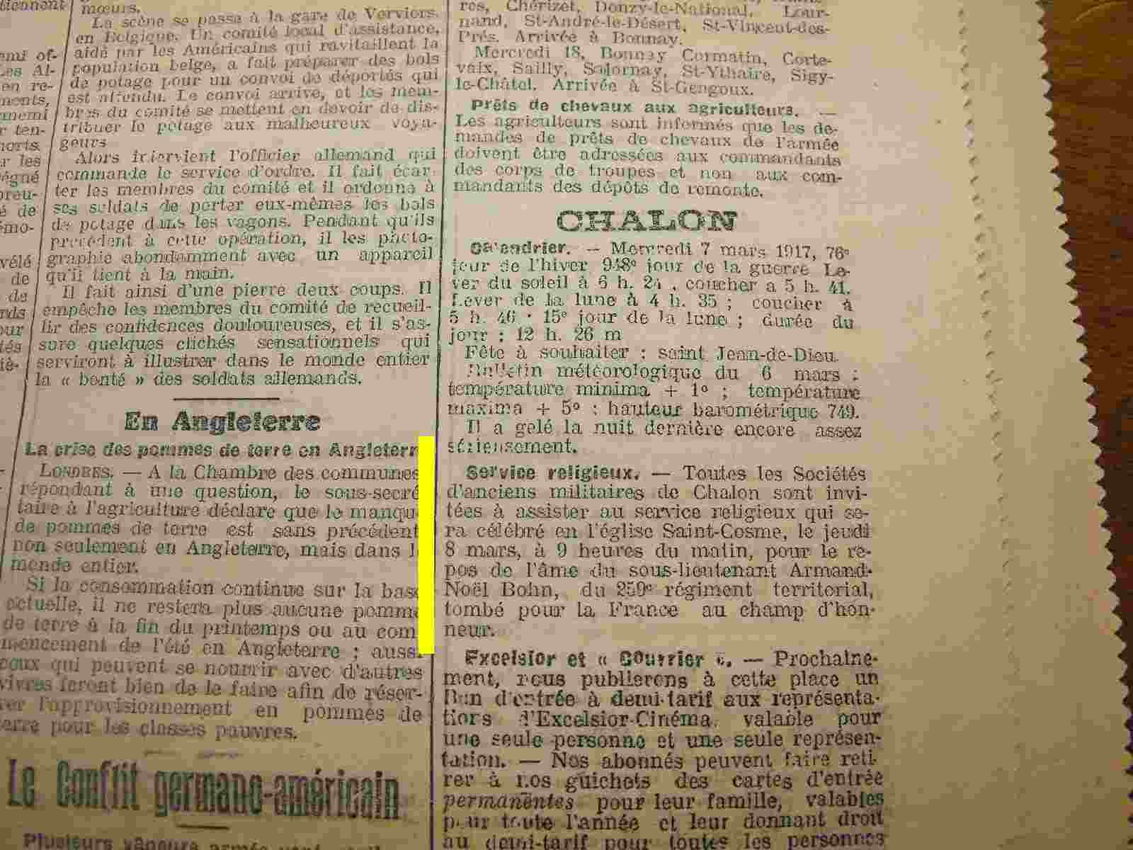 Avis DC = Courrier S&L du 07-03-1917
