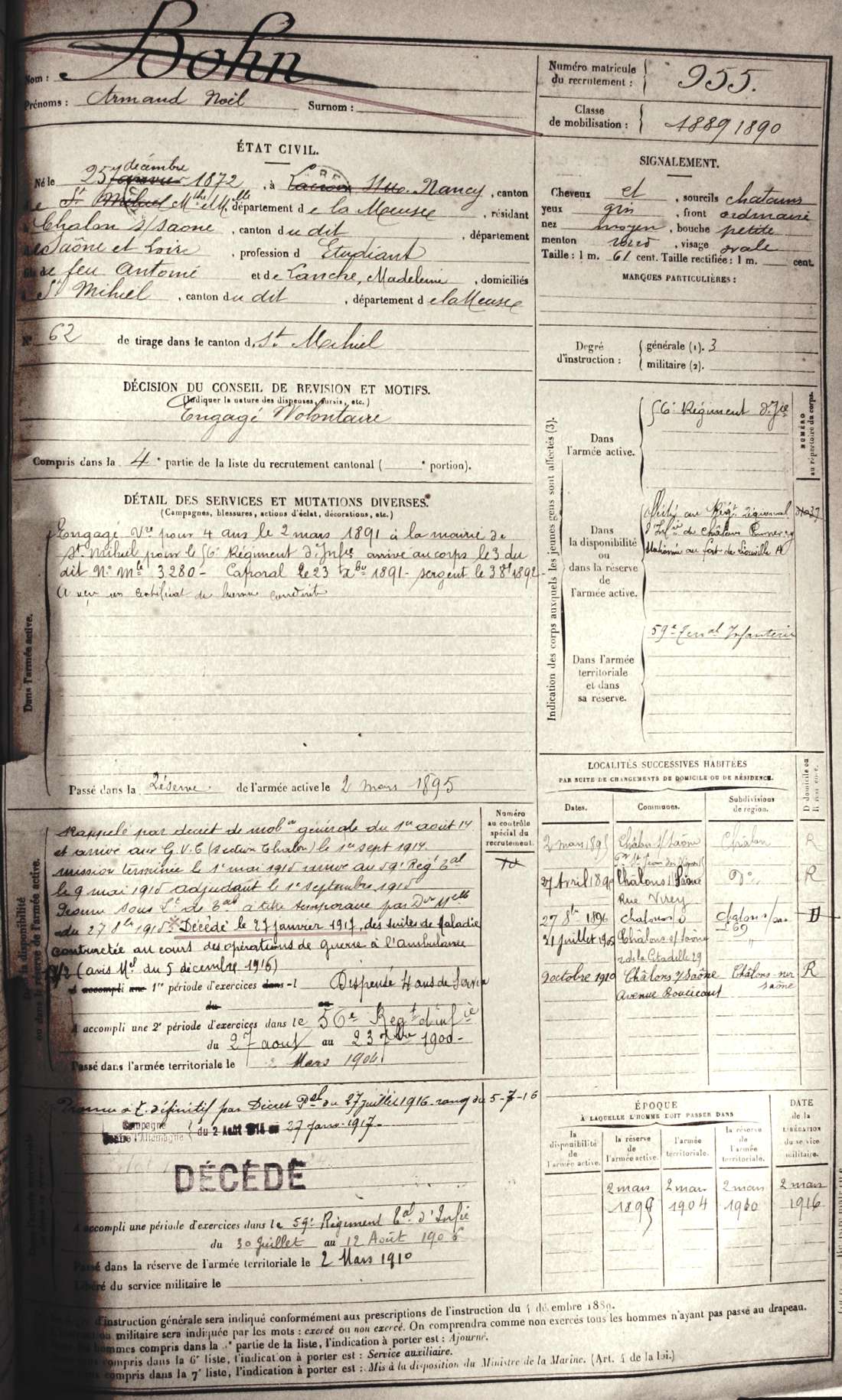 Ville de recrutement : Verdun