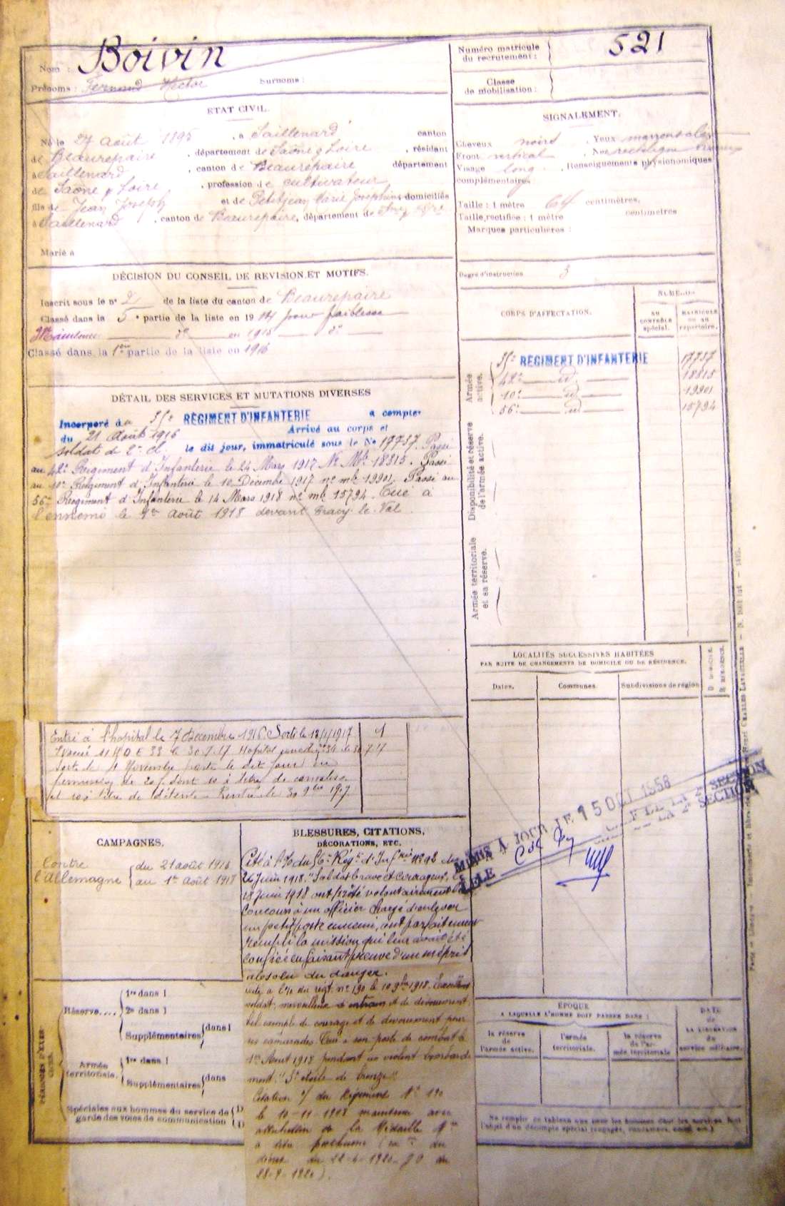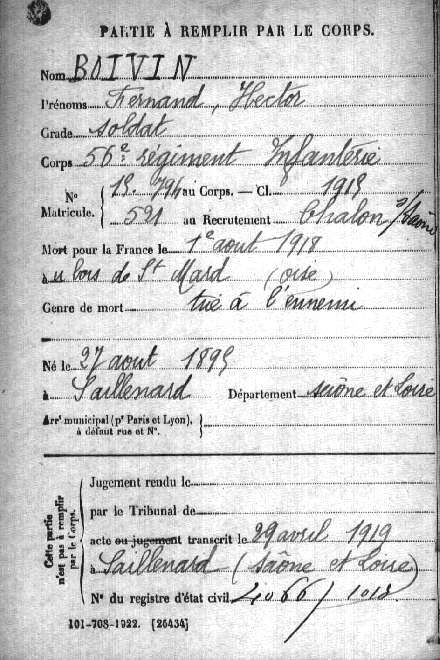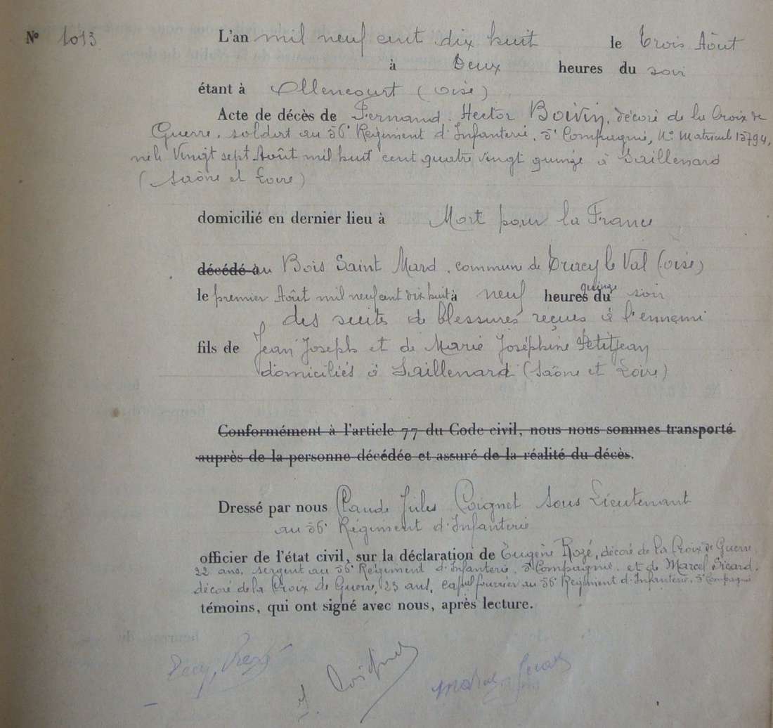 Acte de décès n° 1013 du 03/08/1918 du 56e R.I.