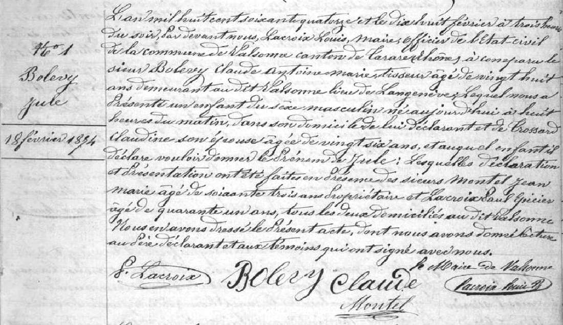 Père : BOLEVY Claude Antoine Marie