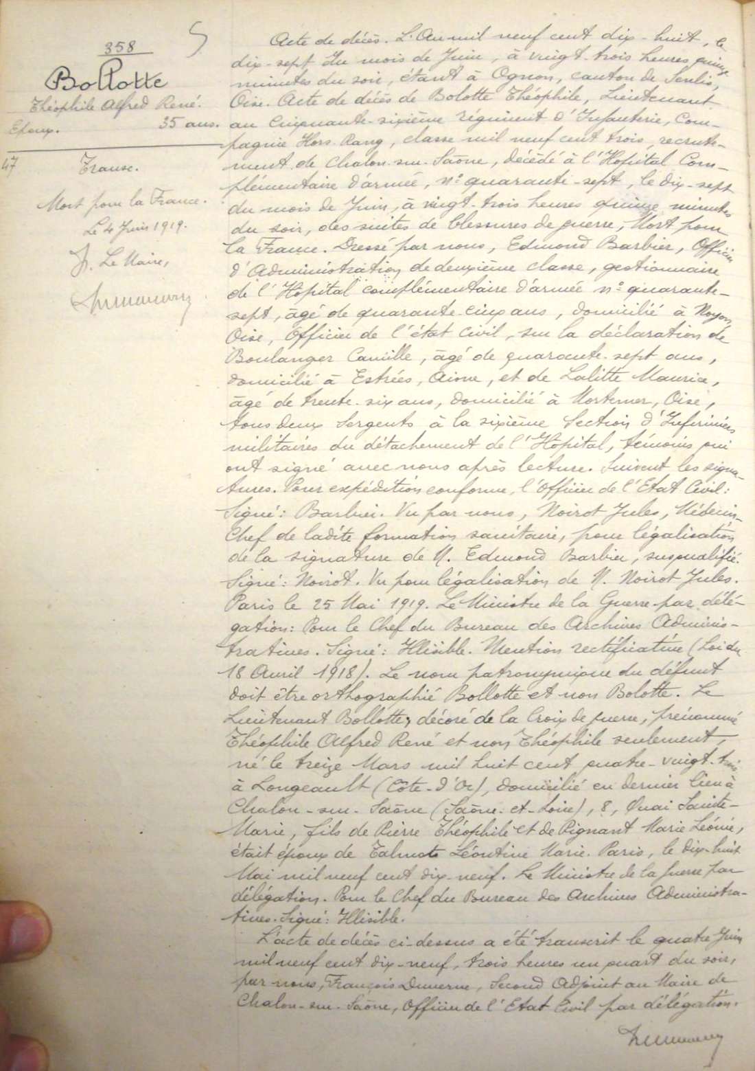 Lieu précis de décès : Hôpital complémentaire d`armée N°47
