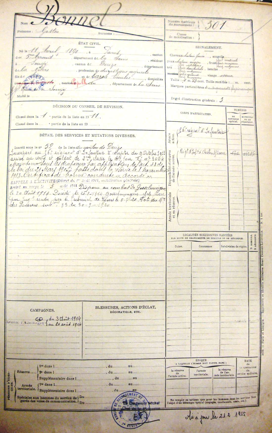 Date de décès : 20/8/1914
