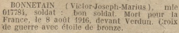 - Croix de Guerre avec Etoile de Bronze à titre posthume