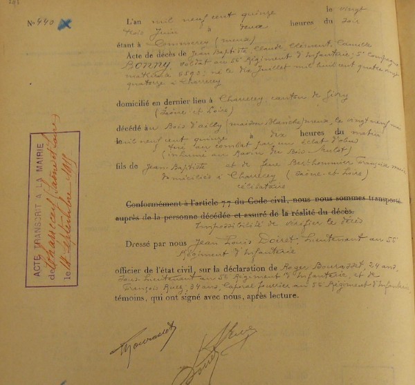 Lieu précis de décès : Bois d`Ailly, Maison Blanche