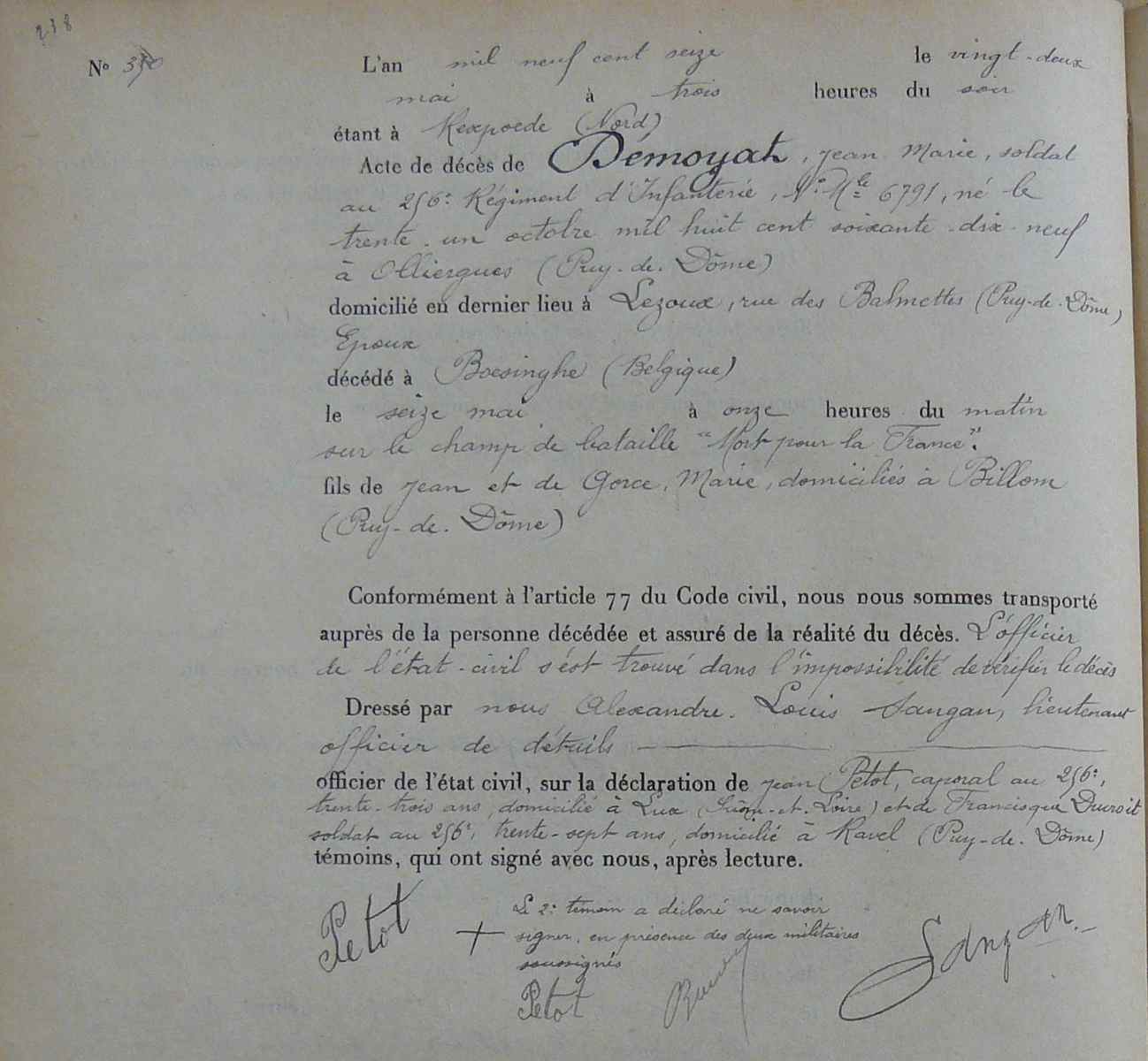 Lieu précis de décès : Bois d`Ailly